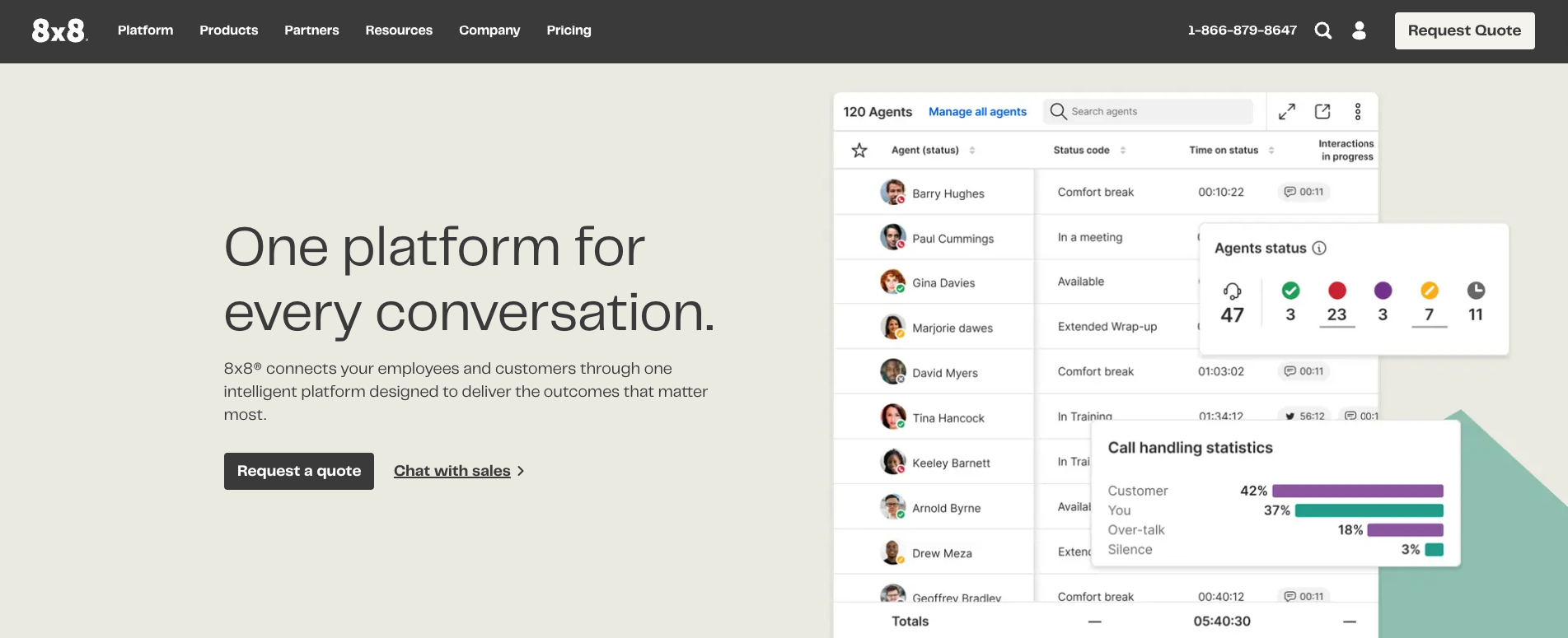 Pricing: Contact center plans start at $75/user/month (voice-only); digital and omnichannel plans require custom quotes