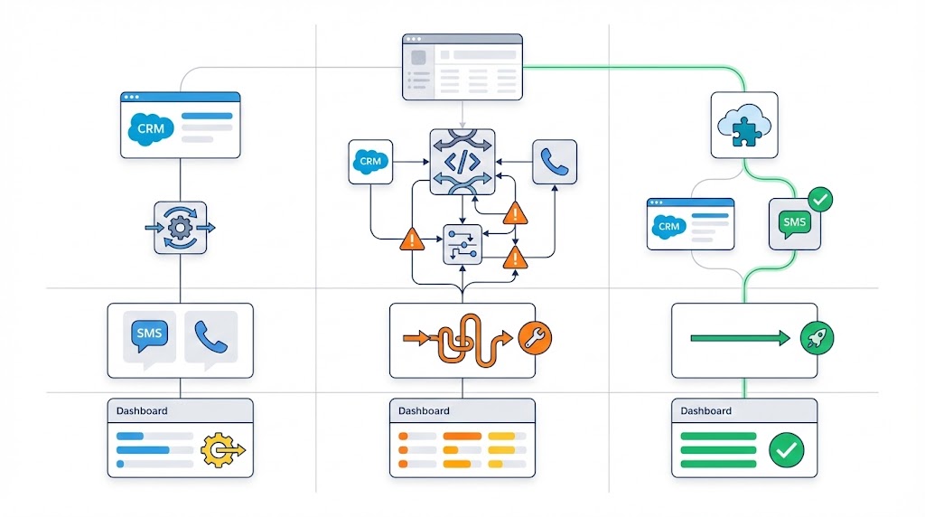 The best integrations combine SMS and calling on the same platform. Same phone number. Same interface. Same contact record. Unified communication history.