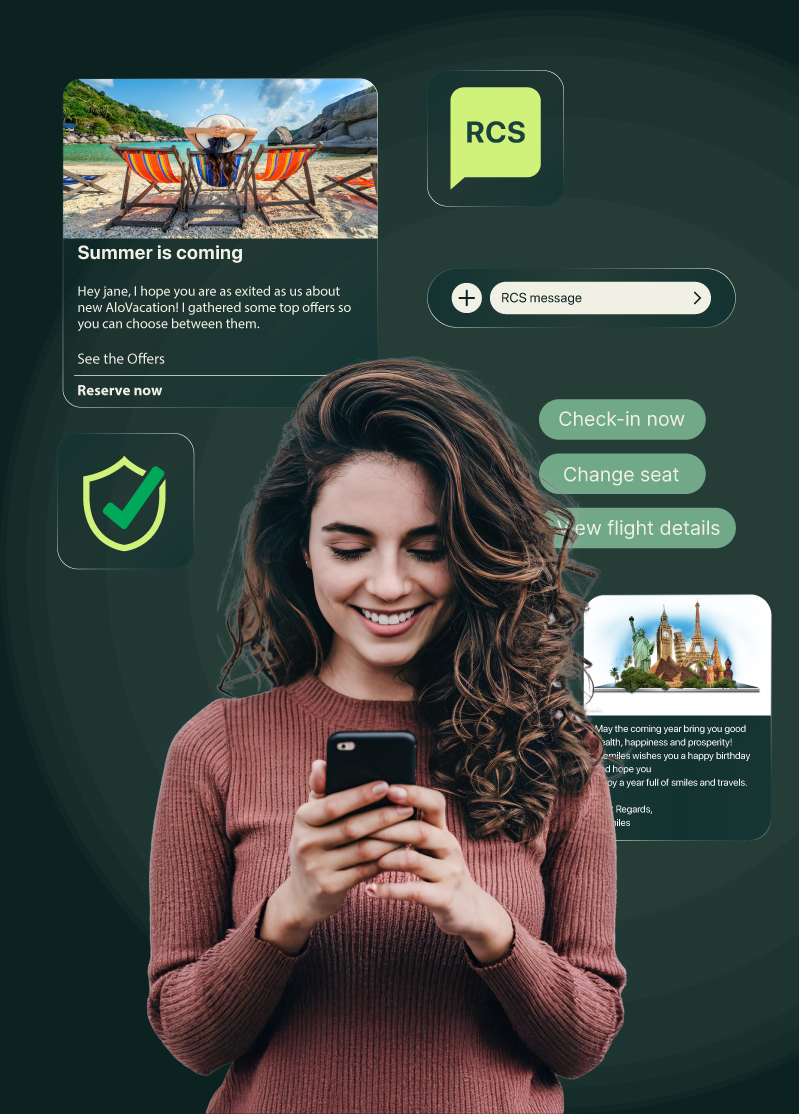 Your customers live in a world of rich, visual content. RCS messaging meets them there—right inside their native inbox.Show your brand with a verified logo and business name. Send product images, appointment maps, and how-to videos. Add buttons that let customers book, buy, or call with one tap.
