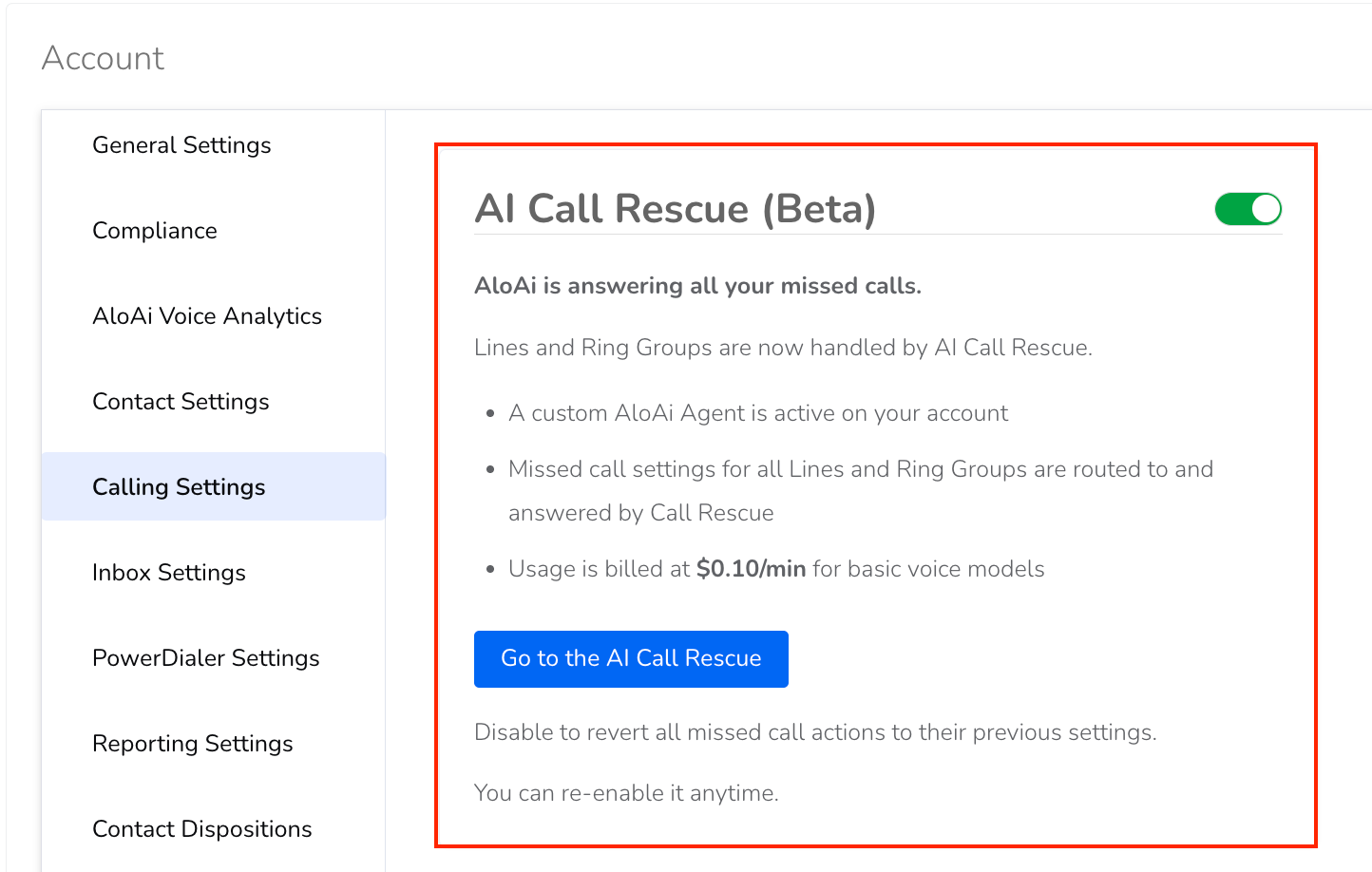 All remaining references to “AI Call Rescue (Beta)” have been removed, aligning labels and terminology across the platform.