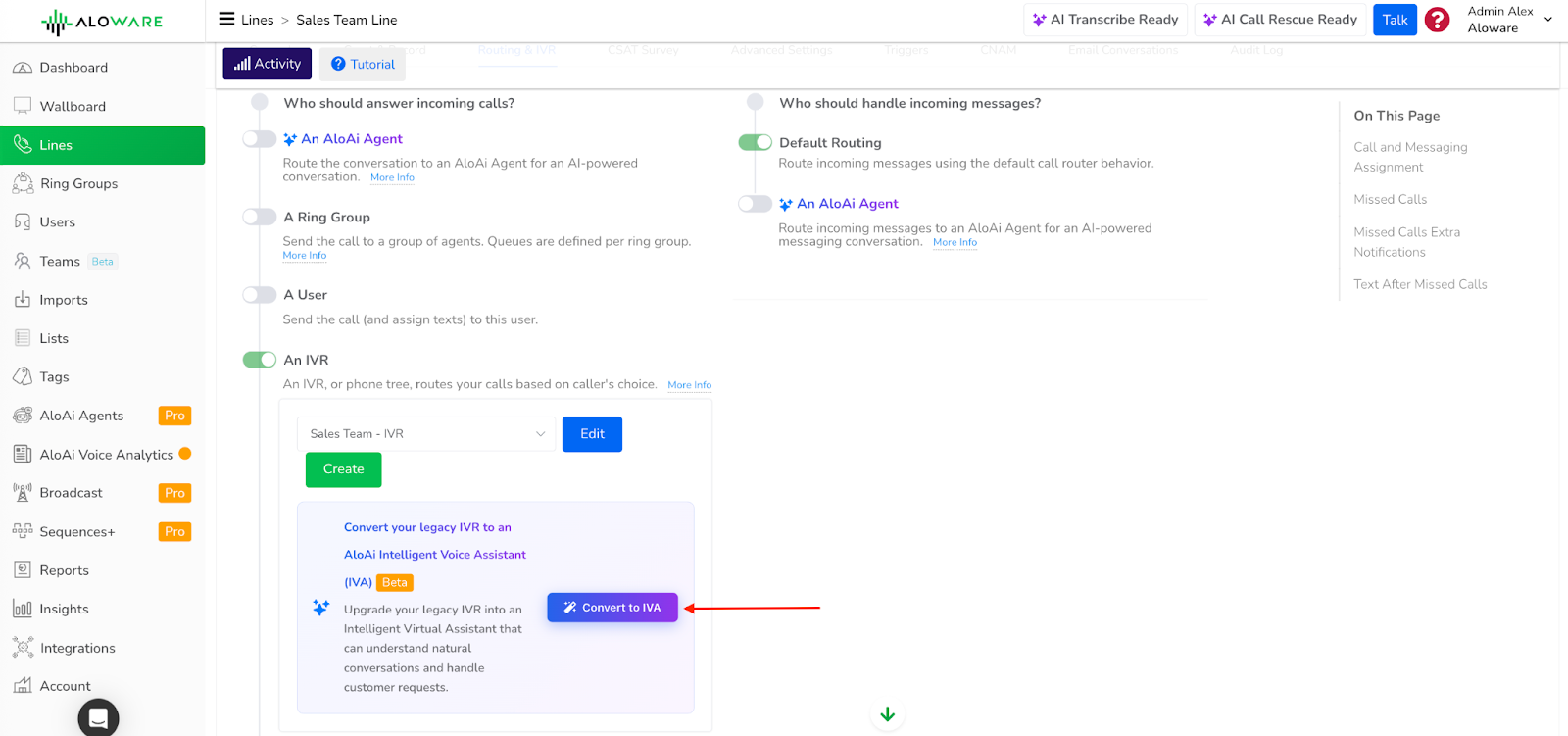 Aloware introduces the AloAi IVA Inbound Answer Conversion Wizard, a guided tool that allows admins to convert legacy touch-tone IVR systems into conversational AI voice assistants in minutes.