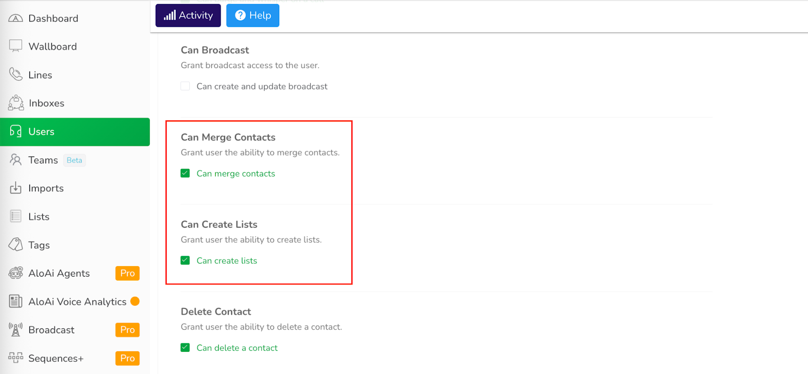 Admins can now set more precise controls over user actions related to contacts and lists. For example, they can allow specific users to merge contacts while restricting list creation at the user or account level. These updates help maintain cleaner workflows and prevent unauthorized changes without disrupting daily operations.