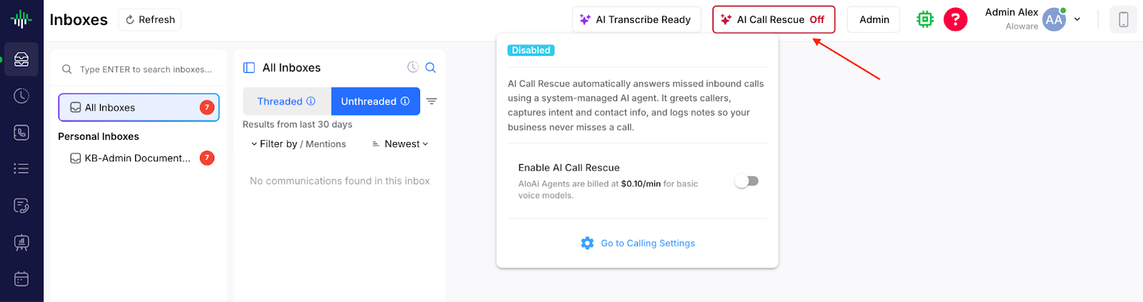 AI Call Rescue CTA now visible in Talk (Admin only)