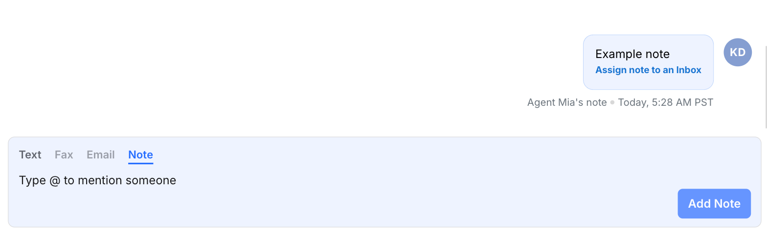 Users can assign contact notes to a shared Inbox from the Contacts page. Once linked, these notes are visible to anyone working inside that Inbox, improving team alignment and context visibility.